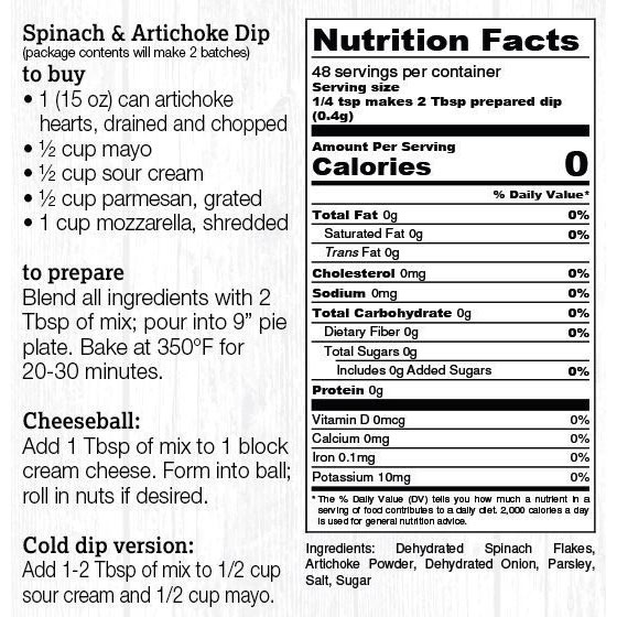 Halladay’s Artisan Dip Mix Spinach Artichoke