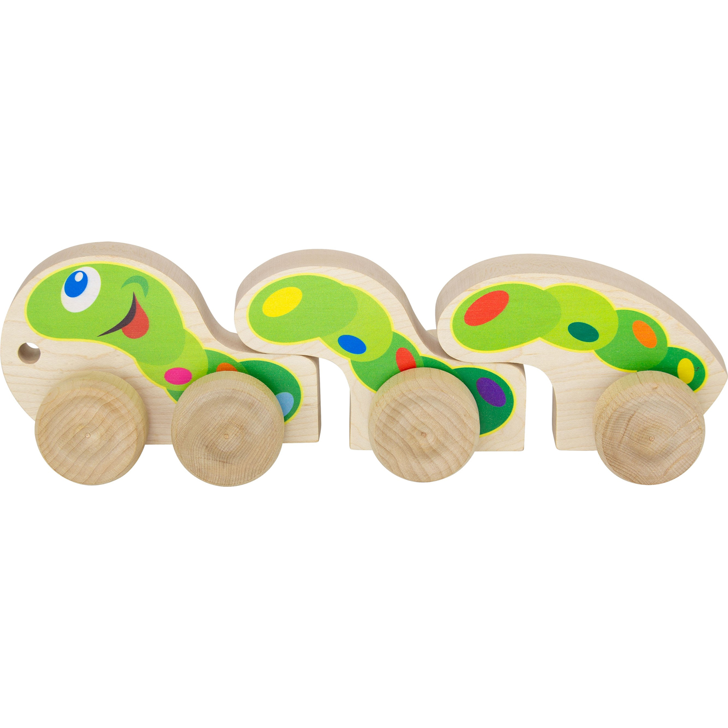 A push toy for pre-toddlers. The wheels are off-center to create a wobbling motion as it rolls. String can to added to make a pull toy. Made of hardwood maple and decorated with a non-toxic ink print. Measures approx. 11.5″ long. Shrink-wrapped.