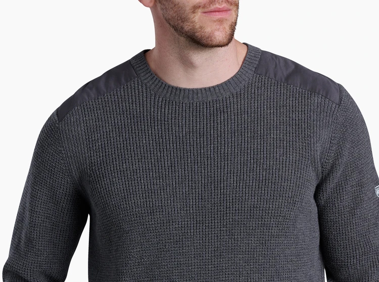 The EVADER™ Sweater features our ultra-soft Merino and Organic Cotton blend paired with waxed, woven shoulders for a masculine look and gear-carrying durability. Premium warmth, all-day comfort, and MOUNTAIN BORN® style that works as a cozy layer or handsome stand-alone.