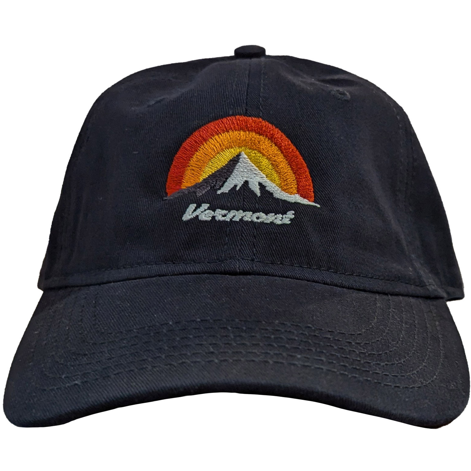 Vermont Hat Dad Hat Mountain Sunset. 2 3/4″ brim, strap adjustable back.
