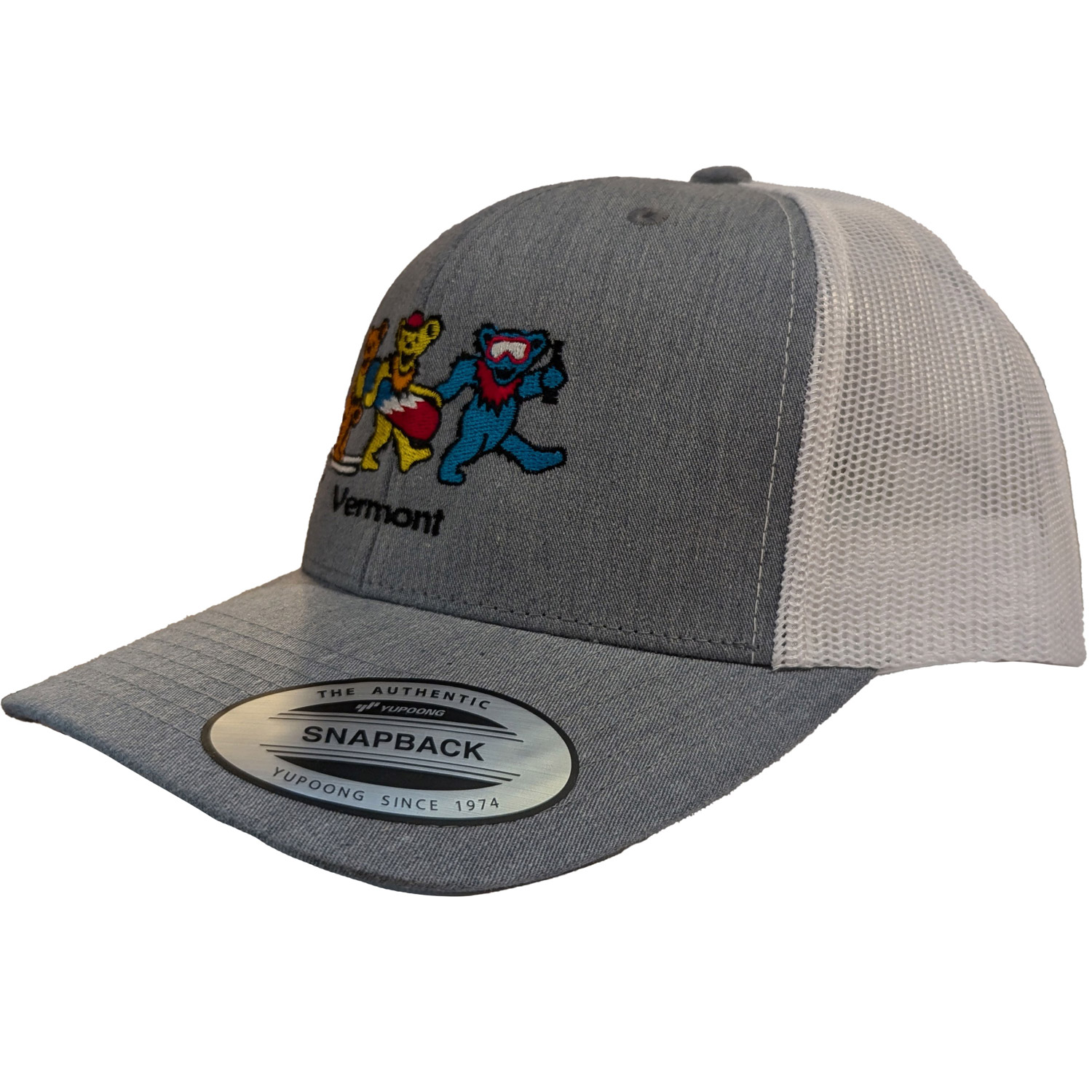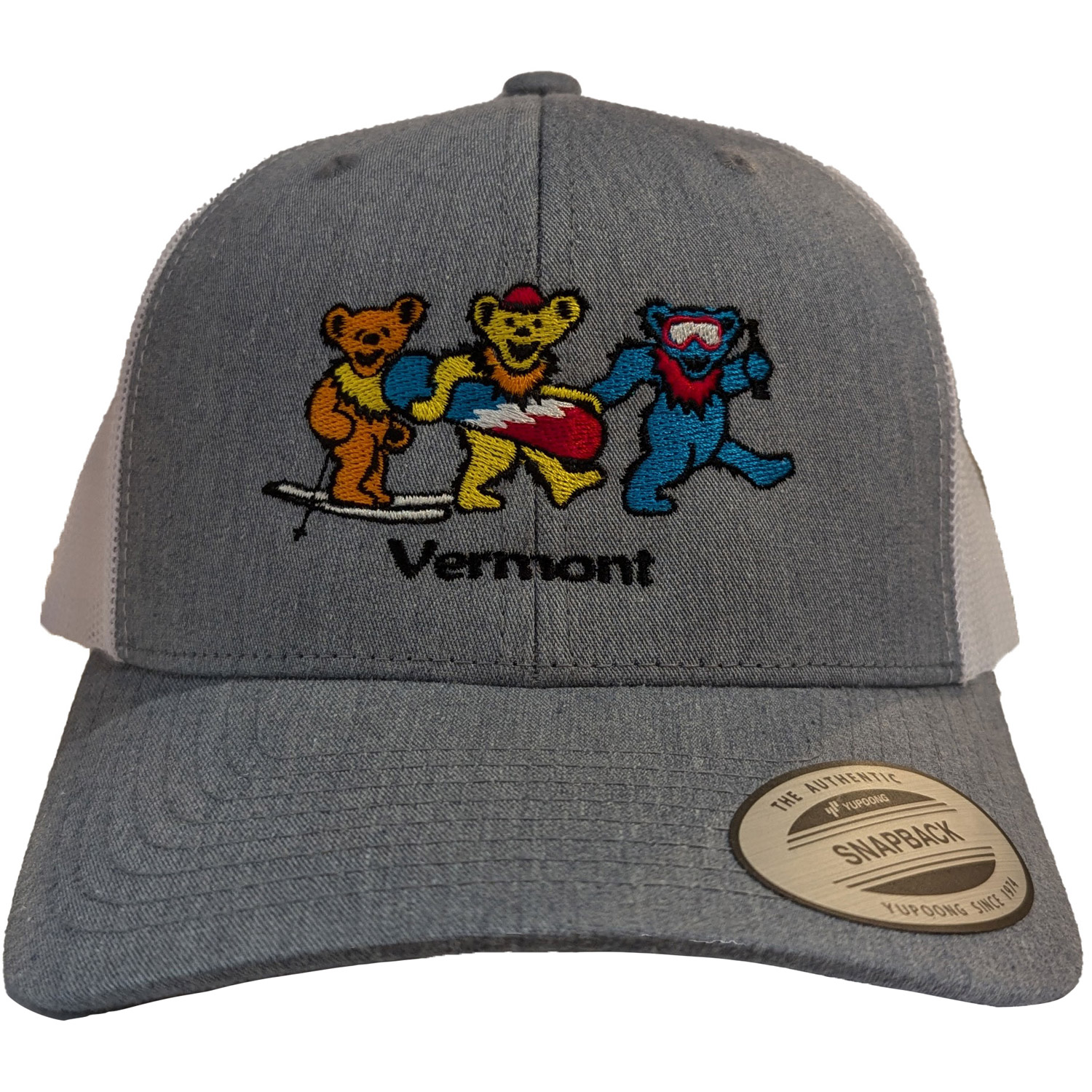 Vermont Hat Dancing Bears Trucker. 2 3/4″ brim snapback closure.